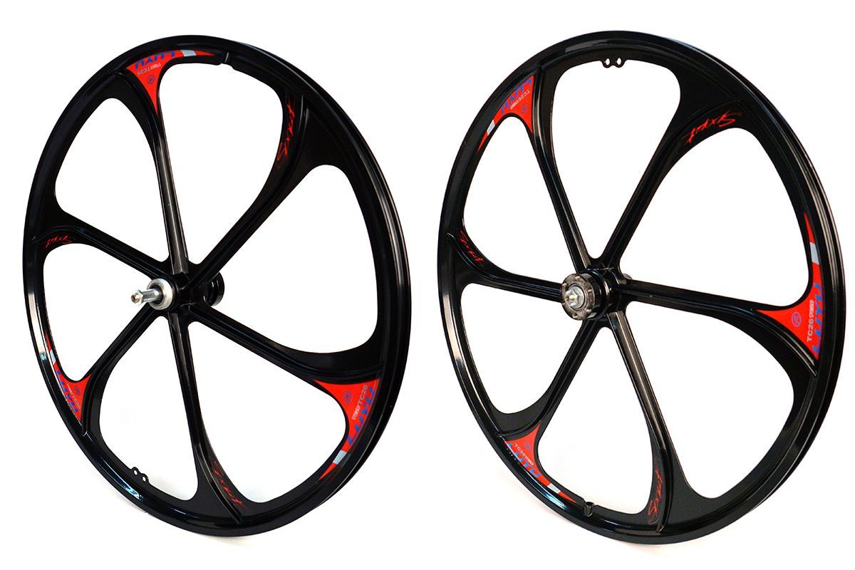 • Комплект колес 26" MTB,литое,под трещотку, двойной обод,алюм.,6 лопастей,черное,135/110мм